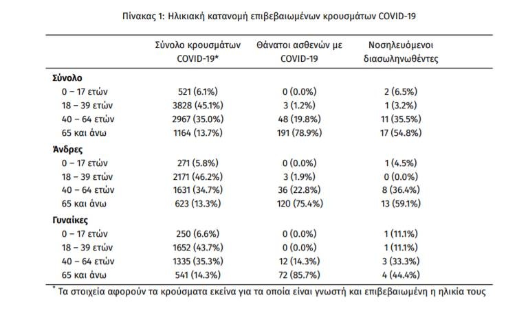 Η διάμεση ηλικία των θανόντων συμπολιτών μας ήταν τα 77 έτη και το 94.6% είχε κάποιο υποκείμενο νόσημα ή/και ηλικία 70 ετών και άνω.