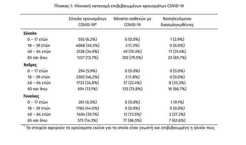Η διάμεση ηλικία των θανόντων συμπολιτών μας ήταν τα 77 έτη και το 93.7% είχε κάποιο υποκείμενο νόσημα ή/και ηλικία 70 ετών και άνω.