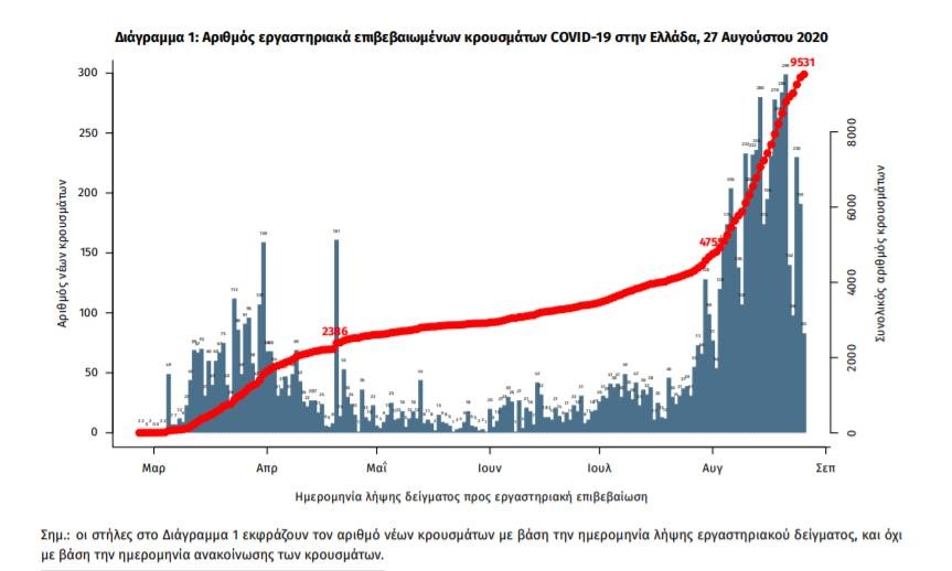 Την Πέμπτη (27/08) ο ΕΟΔΥ ανακοίνωσε 259 νέα κρούσματα του κορονοϊού στη χώρα, εκ των οποίων τα 25 εντοπίστηκαν κατόπιν ελέγχων στις πύλες εισόδου της χώρας.