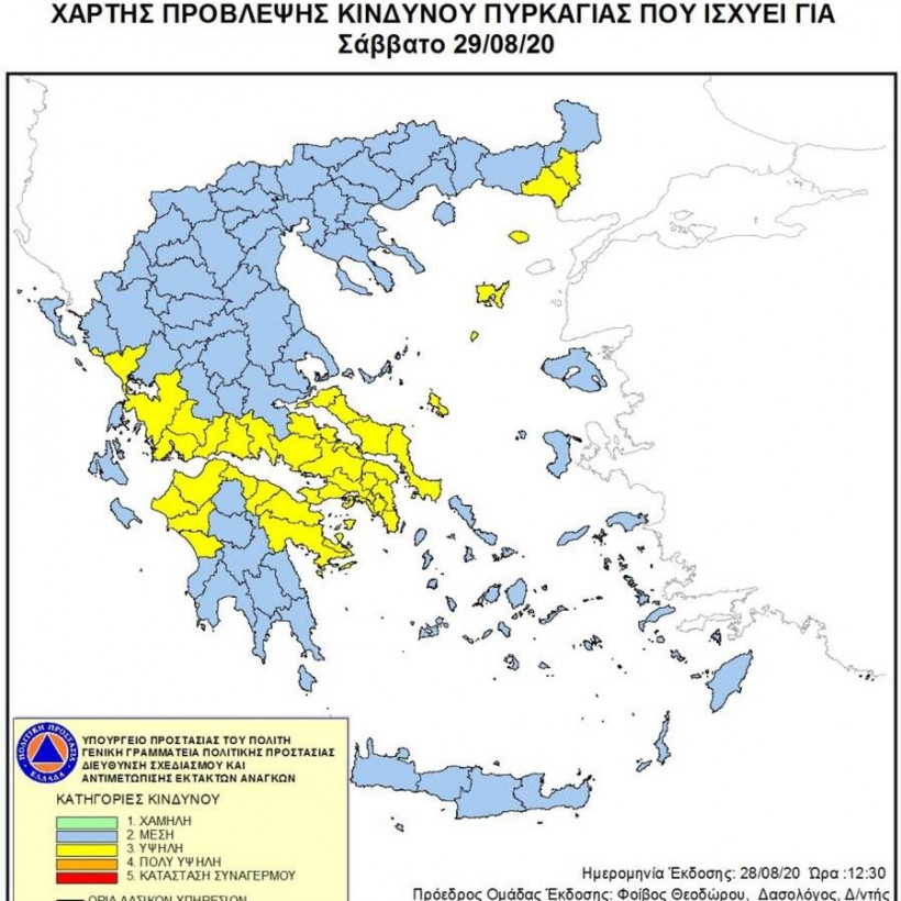 Δείτε στο χάρτη, τις περιοχές που αντιμετωπίζουν κίνδυνο σήμερα Σάββατο, 29 Αυγούστου