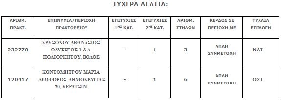 Σημειώνεται ότι στην δεύτερη κατηγορία βρέθηκαν δύο επιτυχημένα δελτία που κερδίζουν από 56.311,86 ευρώ το κάθε ένα.