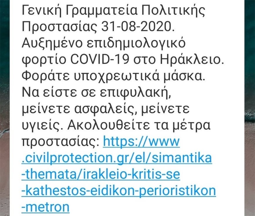 Κορονοϊός: Έκτακτο SMS του 112 στο Ηράκλειο Κρήτης - «Να είστε σε επιφυλακή»
