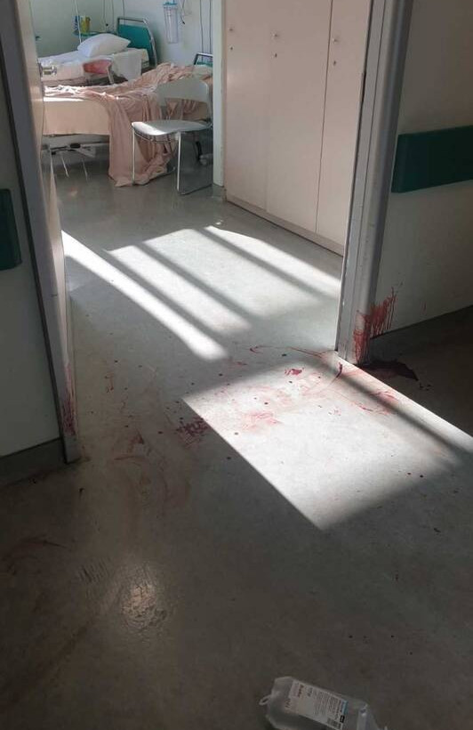 Μόλις η νοσηλεύτρια μπήκε στον θάλαμο της επιτέθηκε, με τη συμπλοκή να μεταφέρεται στον διάδρομο. Τραβώντας την από τα μαλλιά, χτύπησε το κεφάλι της στον τοίχο και στη συνέχεια την τραυμάτισε ελαφρά με το μαχαίρι στον αυχένα.