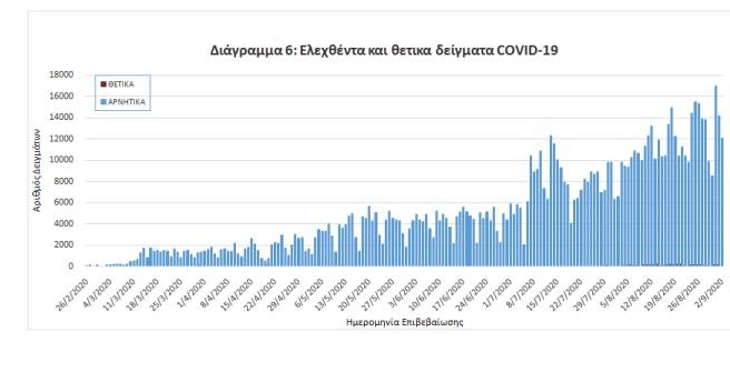 Δείγματα που έχουν ελεγχθεί στα συνεργαζόμενα με τον ΕΟΔΥ εργαστήρια: Από την 1η Ιανουαρίου 2020 μέχρι σήμερα, στα εργαστήρια που διενεργούν ελέγχους για τον νέο κορονοϊό (SARS-CoV-2) και που δηλώνουν συστηματικά στον ΕΟΔΥ το σύνολο των δειγμάτων που ελέγχουν (θετικά και αρνητικά), έχουν συνολικά ελεγχθεί 992.566 κλινικά δείγματα, εκ των οποίων τα 11.176 (1.12%) ήταν θετικά στον κορoνοϊό (συμπεριλαμβάνονται και περισσότερα από ένα δείγματα ανά άτομο που ελέγχθηκε).