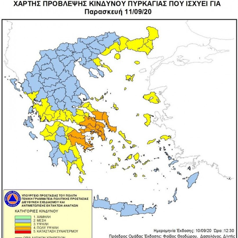 Δείτε στο χάρτη τις περιοχές που αντιμετωπίζουν κίνδυνο σήμερα Παρασκευή, 11 Σεπτεμβρίου 2020