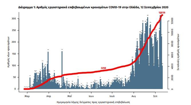 Σήμερα, Σάββατο (12/09) ο ΕΟΔΥ ανακοίνωσε 302 νέα κρούσματα του κορονοϊού στη χώρα, εκ των οποίων 29 συνδέονται με γνωστές συρροές και 21 εντοπίστηκαν κατόπιν ελέγχων στις πύλες εισόδου της χώρας - Ο συνολικός αριθμός των κρουσμάτων είναι 13.036
