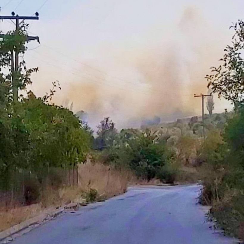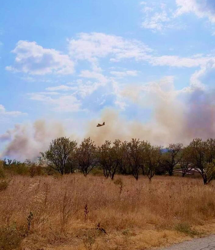 Η πυρκαγιά που ξεκίνησε από το κοινοτικό στάδιο του χωριού κινείται ταχύτατα με κατεύθυνση νοτιοδυτικά προς παρακείμενους λόφους, σύμφωνα με το δημοσίευση του gnomionline.gr