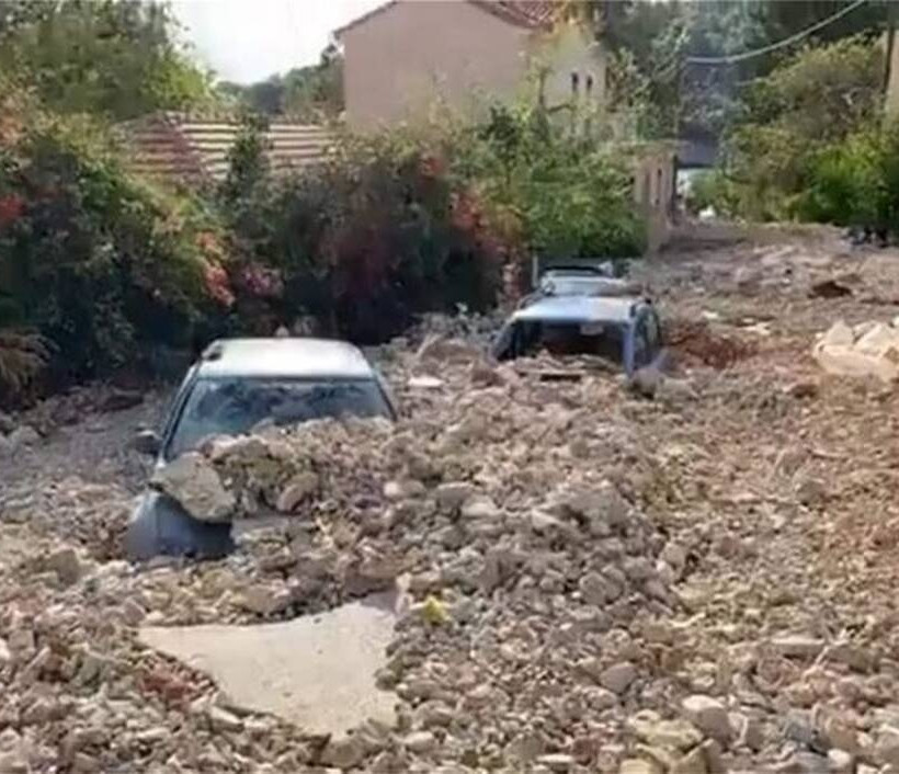 Συγκλονίζουν οι εικόνες από την Άσσο, στην Κεφαλονιά, όπου οι χείμαρροι παρέσυραν τόνους πέτρας και χώματος, οι οποίοι σκέπασαν ολόκληρα αυτοκίνητα.
