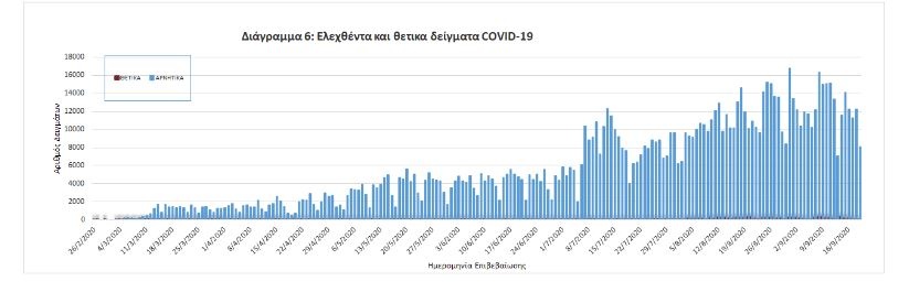 Δείγματα που έχουν ελεγχθεί στα συνεργαζόμενα με τον ΕΟΔΥ εργαστήρια: Από την 1η Ιανουαρίου 2020 μέχρι σήμερα, στα εργαστήρια που διενεργούν ελέγχους για τον νέο κορoνοϊό (SARS-CoV-2) και που δηλώνουν συστηματικά στον ΕΟΔΥ το σύνολο των δειγμάτων που ελέγχουν (θετικά και αρνητικά), έχουν συνολικά ελεγχθεί 1.202.213 κλινικά δείγματα.