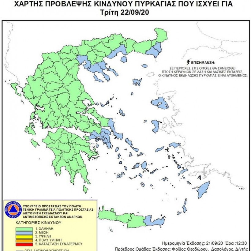 Δείτε στο χάρτη, τις περιοχές που αντιμετωπίζουν κίνδυνο σήμερα Τρίτη, 22 Σεπτεμβρίου