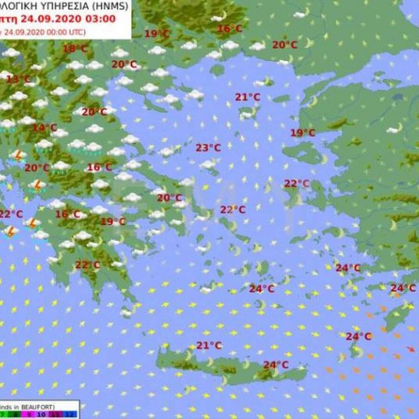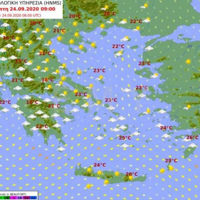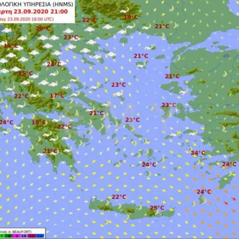 Άνεμοι: Στα νότια από δυτικές διευθύνσεις 4 με 5 και βαθμιαία στη θάλασσα Κυθήρων τοπικά 6 μποφόρ. Στα υπόλοιπα μεταβλητοί 3 με 4 μποφόρ και από το απόγευμα δυτικοί τοπικά 5 μποφόρ.