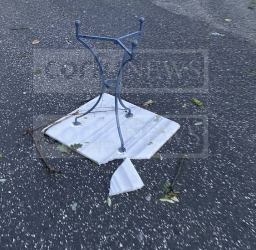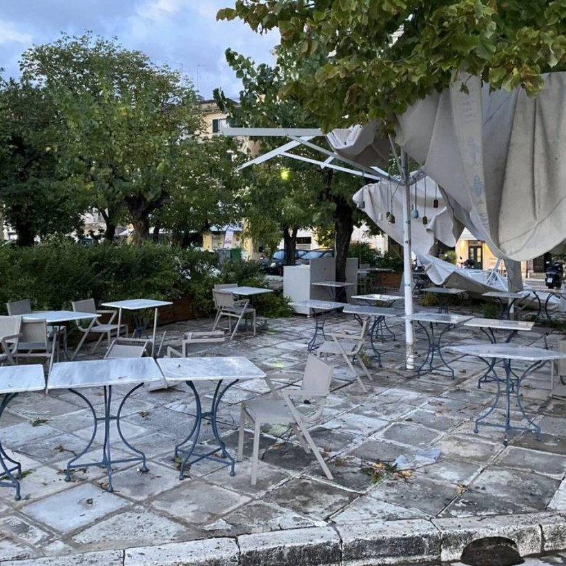 Χαρακτηριστικές είναι το βίντεο και οι εικόνες που δημοσιεύει το corfutvnews.gr στις οποίες φαίνεται το μέγεθος της καταστροφής στο κέντρο της πόλης, με δέντρα να έχουν ξεριζωθεί και τραπεζοκαθίσματα να έχουν καταστραφεί.