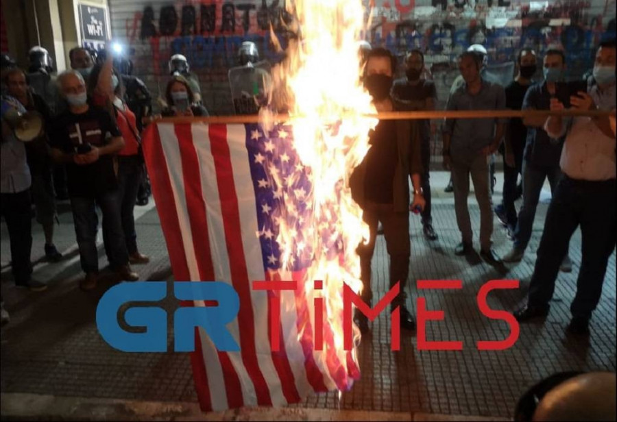 Έκαψαν την αμερικανική σημαία στη Θεσσαλονίκη