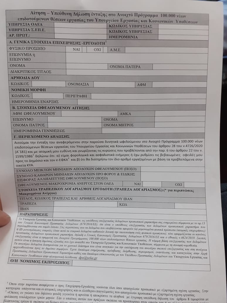 Επιδότηση 100.000 νέων θέσεων εργασίας: Το έντυπο που πρέπει να υποβάλλουν οι εργοδότες