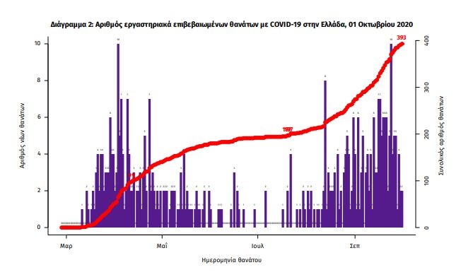 Τέλος, έχουμε 2 ακόμα καταγεγραμμένους θανάτους και 393 θανάτους συνολικά στη χώρα. 144 (36.6%) γυναίκες και οι υπόλοιποι άνδρες.