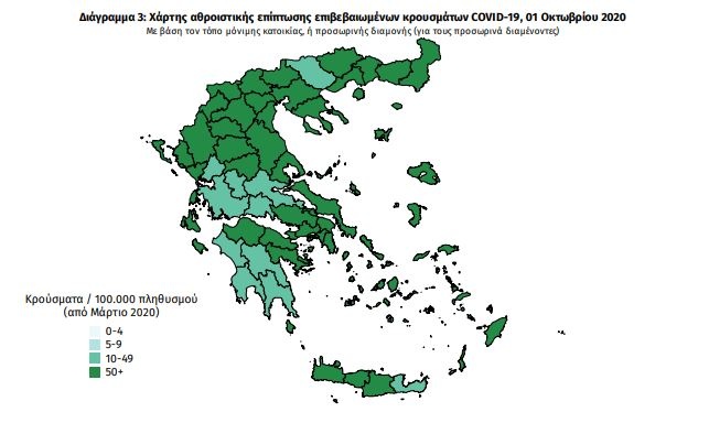 Από την πρώτη κιόλας ημέρα του Οκτώβρη η Αττική σημείωσε αρνητικό ρεκόρ καθώς από τα 441 κρούσματα που εντοπίστηκαν στην χώρα, τα 272 εντοπίστηκαν στην πρωτεύουσα. Αξίζει να σημειωθεί ότι ο Σεπτέμβριος ήταν ο χειρότερος μήνας για την Αττική καθώς κατά τη διάρκειά του εντοπίστηκαν περισσότερα από 4.000 κρούσματα.