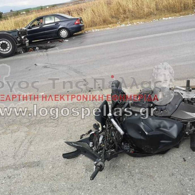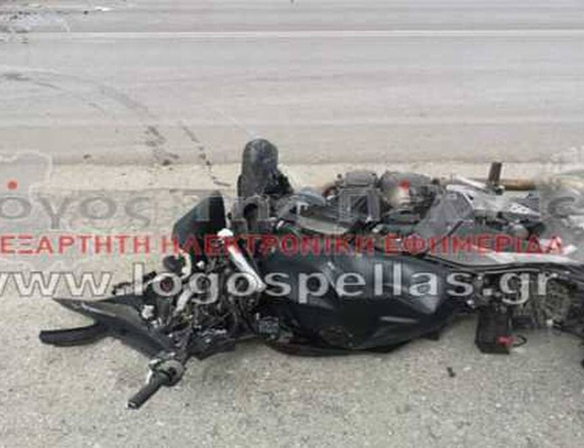 Ο οδηγός της μηχανής μεταφέρθηκε στο νοσοκομείο των Γιαννιτσών και λίγη ώρα αργότερα κατέληξε.