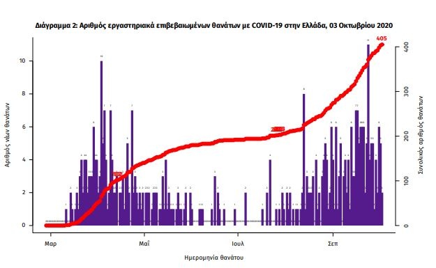 Οι νέοι θάνατοι ασθενών με COVID-19 είναι 7, ενώ από την έναρξη της επιδημίας έχουν καταγραφεί συνολικά 405 θάνατοι. Η διάμεση ηλικία των ασθενών που απεβίωσαν είναι 78 έτη. Ο αριθμός των ασθενών που νοσηλεύονται διασωληνωμένοι είναι 79 (69.6% άνδρες).