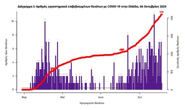 Οι νέοι θάνατοι ασθενών με COVID-19 είναι 3, ενώ από την έναρξη της επιδημίας έχουν καταγραφεί συνολικά 420 θάνατοι. Η διάμεση ηλικία των ασθενών που απεβίωσαν είναι 78 έτη. Ο αριθμός των ασθενών που νοσηλεύονται διασωληνωμένοι είναι 87 (72.4% άνδρες).