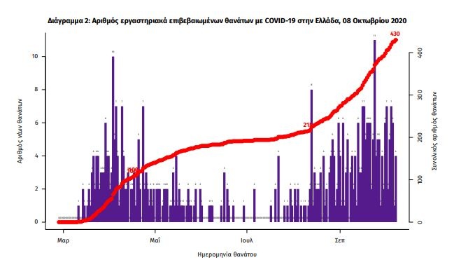 Οι νέοι θάνατοι ασθενών με COVID-19 είναι 6, ενώ από την έναρξη της επιδημίας έχουν καταγραφεί συνολικά 430 θάνατοι. Η διάμεση ηλικία των ασθενών που απεβίωσαν είναι 78 έτη. Ο αριθμός των ασθενών που νοσηλεύονται διασωληνωμένοι είναι 91 (72.5% άνδρες).