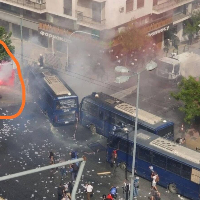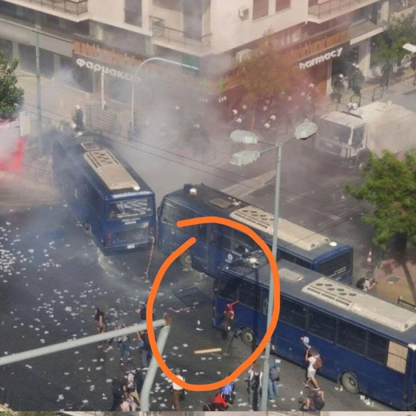 Όπως ανέφερε στο ΑΠΕ-ΜΠΕ αρμόδιο στέλεχος της ΕΛΑΣ, κάποιες από τις φωτογραφίες απεικονίζουν άτομο με συσκευή ασετιλίνης που επιχειρεί να πυρπολήσει κλούβες των ΜΑΤ και υποστηρίζει ότι αυτό ήταν η αρχική αιτία των επεισοδίων.