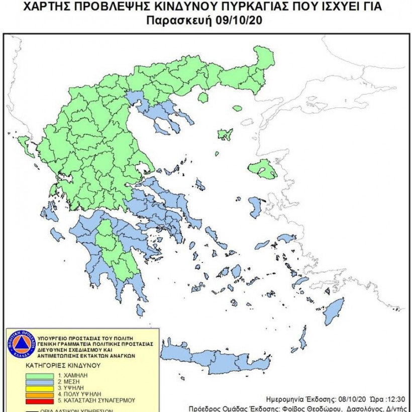 Δείτε στο χάρτη, τις περιοχές που αντιμετωπίζουν κίνδυνο σήμερα Παρασκευή, 9 Οκτωβρίου