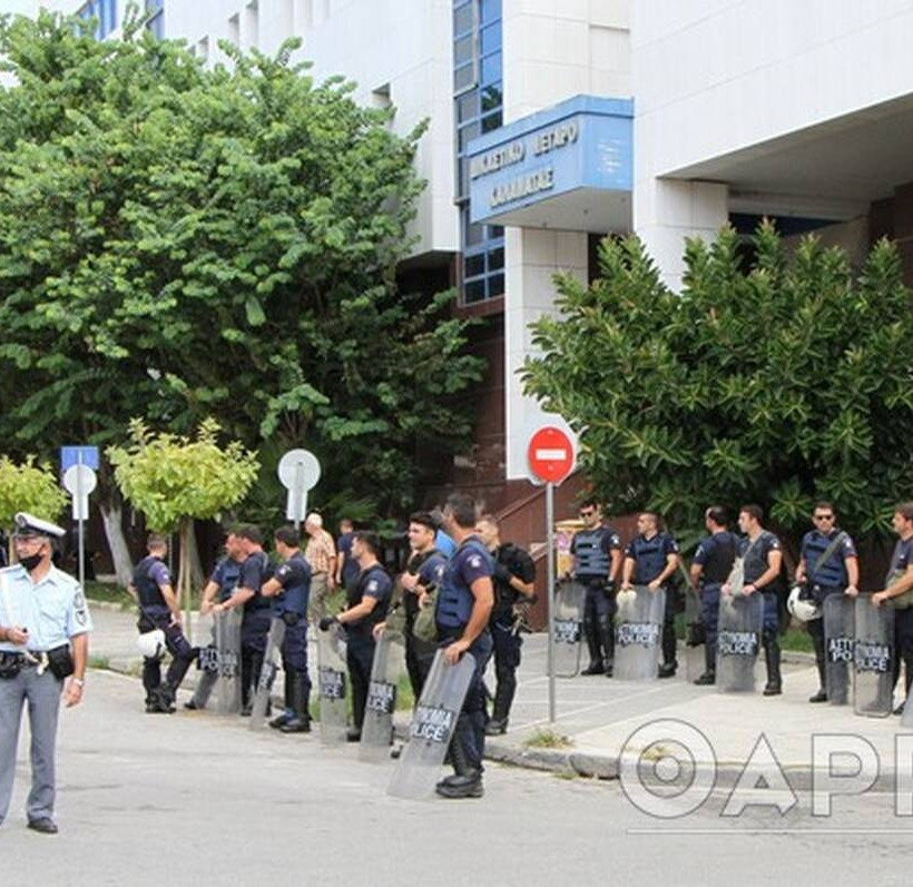 «Zωσμένο» το Δικαστικό Μέγαρο της Καλαμάτας χθες από ισχυρές αστυνομικές δυνάμεις.