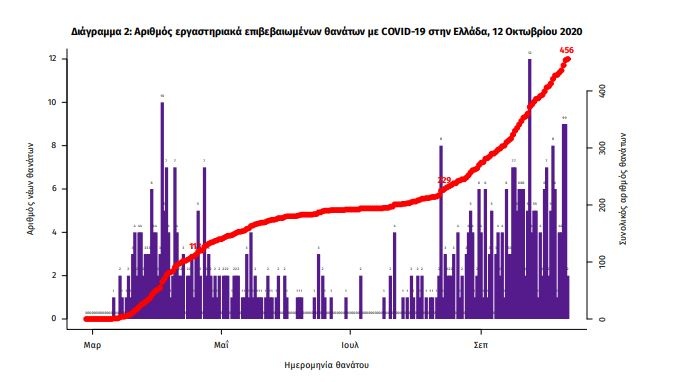 Οι νέοι θάνατοι ασθενών με COVID-19 είναι 7, ενώ από την έναρξη της επιδημίας έχουν καταγραφεί συνολικά 456 θάνατοι.Η διάμεση ηλικία των ασθενών που απεβίωσαν είναι 79 έτη. Ο αριθμός των ασθενών που νοσηλεύονται διασωληνωμένοι είναι 91 (72.5% άνδρες).