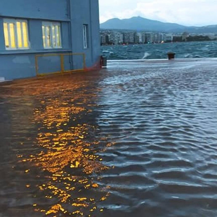 Η θάλασσα βγήκε στη στεριά εξαιτίας των ισχυρών μποφόρ που έπνεαν στον Θερμαϊκό, με αποτέλεσμα να πλημμυρίσει η παραλιακή λεωφόρος της πόλης, δυσχεραίνοντας την κυκλοφορία των αυτοκινήτων με τους οδηγούς να κινούνται με ιδιαίτερη προσοχή.