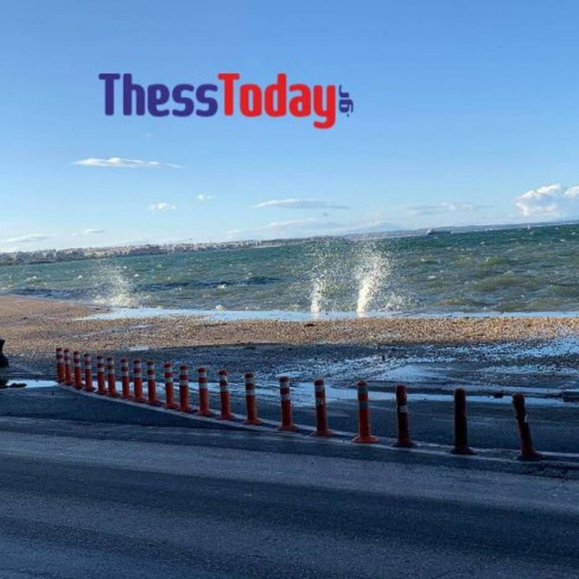 Η θάλασσα βγήκε στη στεριά εξαιτίας των ισχυρών μποφόρ που έπνεαν στον Θερμαϊκό, με αποτέλεσμα να πλημμυρίσει η παραλιακή λεωφόρος της πόλης, δυσχεραίνοντας την κυκλοφορία των αυτοκινήτων με τους οδηγούς να κινούνται με ιδιαίτερη προσοχή.