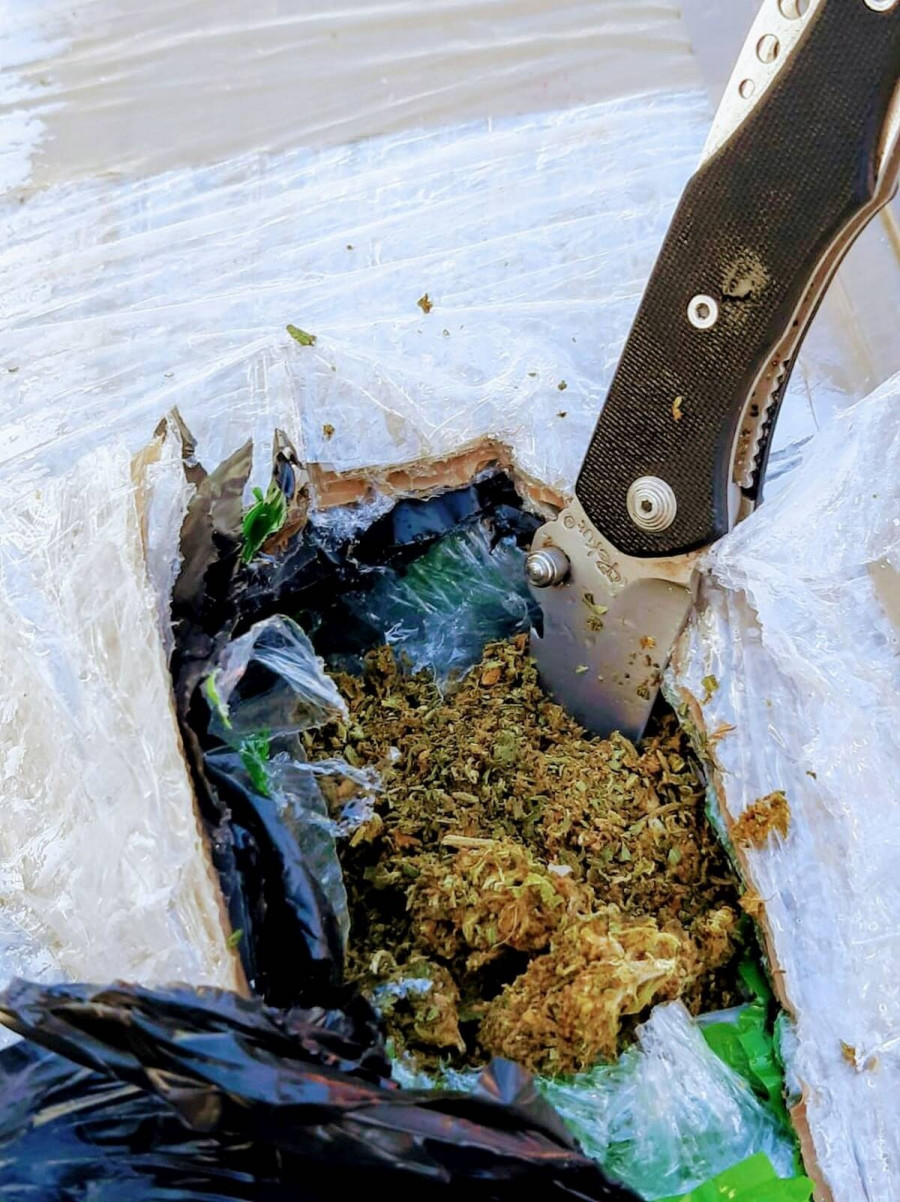 - είκοσι (20) σάκοι ταξιδίου και οκτώ (08) διαφόρων τύπων συσκευασιών εντός των οποίων είχαν τοποθετηθεί πεντακόσια ενενήντα έξι δέματα (596) περιέχοντα ποσότητα κατεργασμένης κάνναβης μεικτού βάρους οκτακοσίων δέκα κιλών και τριακοσίων πενήντα γραμμαρίων (810,350kg).