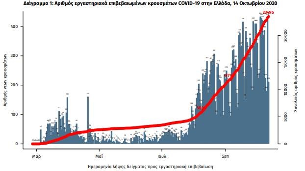 Τα νέα εργαστηριακά επιβεβαιωμένα κρούσματα της νόσου είναι 436, εκ των οποίων 63 συνδέονται με γνωστές συρροές και 31 εντοπίστηκαν κατόπιν ελέγχων στις πύλες εισόδου της χώρας