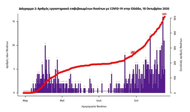 Οι νέοι θάνατοι ασθενών με COVID-19 είναι 9, ενώ από την έναρξη της επιδημίας έχουν καταγραφεί συνολικά 509 θάνατοι. Η διάμεση ηλικία των ασθενών που απεβίωσαν είναι 79 έτη. Ο αριθμός των ασθενών που νοσηλεύονται διασωληνωμένοι είναι 84 (71.4% άνδρες).