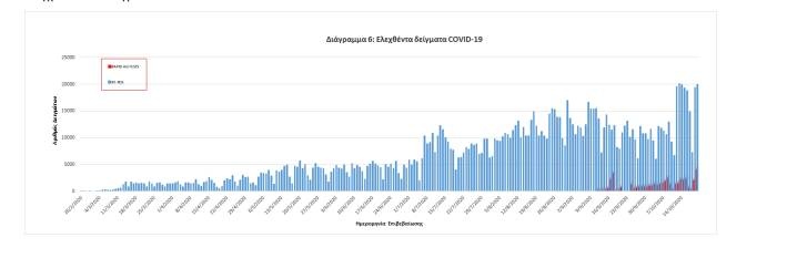 Δείγματα που έχουν ελεγχθεί: Από την 1η Ιανουαρίου 2020 μέχρι σήμερα, στα εργαστήρια που διενεργούν ελέγχους για τον νέο κορονοϊό (SARS-CoV-2) και που δηλώνουν συστηματικά στον ΕΟΔΥ το σύνολο των δειγμάτων που ελέγχουν, έχουν συνολικά ελεγχθεί 1588713 κλινικά δείγματα ενώ από Μονάδες Υγείας και Κλιμάκια του ΕΟΔΥ που διενεργούν ελέγχους Rapid Ag έχουν ελεγχθεί 41827 δείγματα.