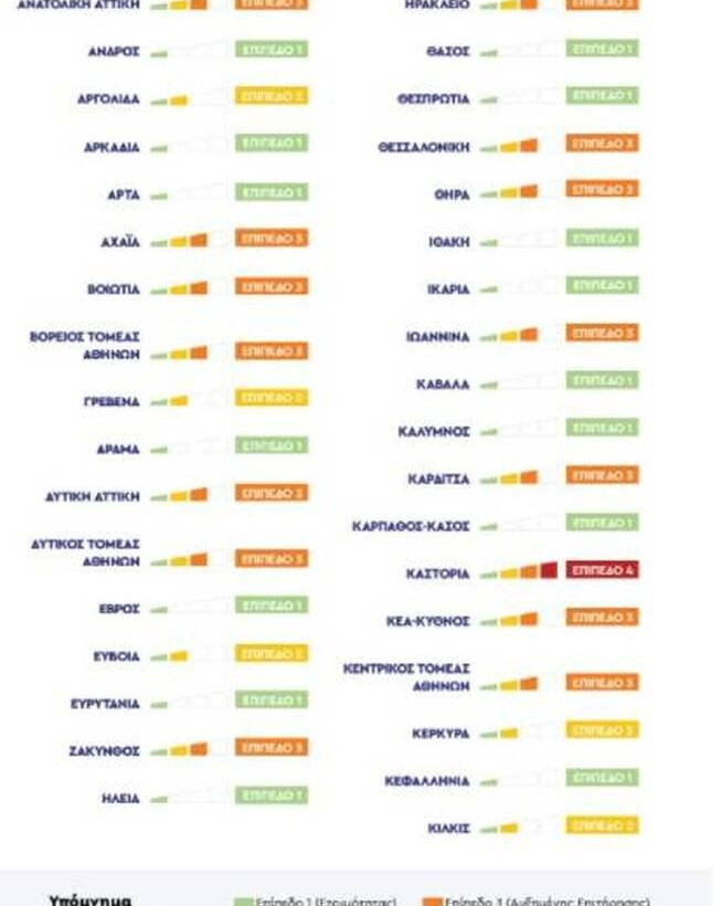 Ο νέος χάρτης για τον κορονοϊό από την Πολιτική Προστασία και οι περιοχές που θα ισχύσουν τα νέα μέτρα: