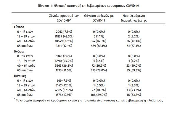 Τέλος, έχουμε 10 ακόμα καταγεγραμμένους θανάτους και 559 θανάτους συνολικά στη χώρα. Οι 209 (37.4%) γυναίκες και οι υπόλοιποι άνδρες. Η διάμεση ηλικία των θανόντων συμπολιτών μας ήταν τα 79 έτη και το 96.2% είχε κάποιο υποκείμενο νόσημα ή/και ηλικία 70 ετών και άνω.