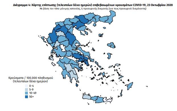 Κορονοϊός: Στους 89 οι διασωληνωμένοι - Ο «χάρτης» των κρουσμάτων την Παρασκευή (23/10)