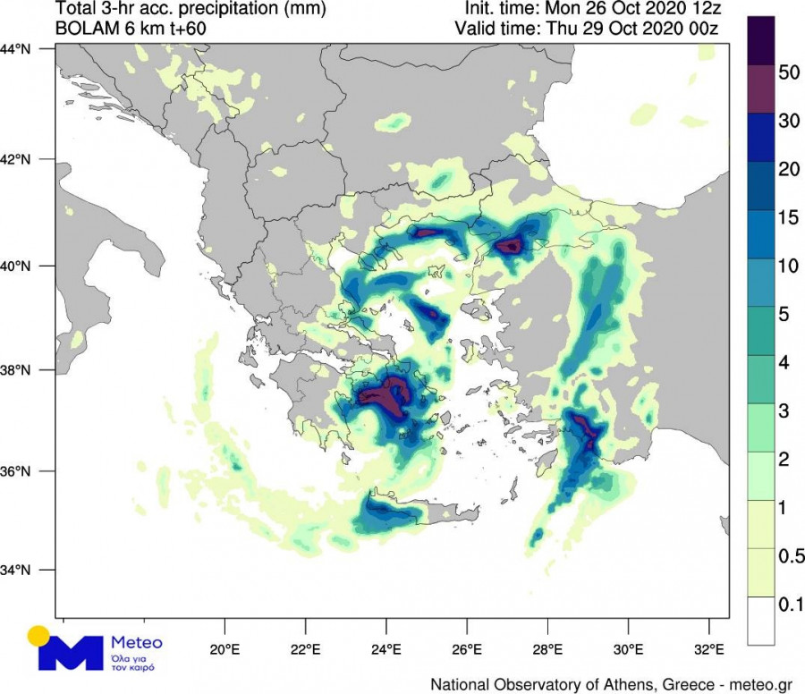 Κρήτη και από το απόγευμα της Πέμπτης (29-10-20) και στις υπόλοιπες