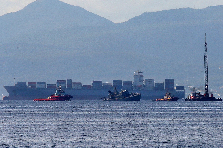 Συναγερμός στο λιμάνι του Πειραιά μετά τη σύγκρουση πλοίου του Πολεμικού Ναυτικού με το φορτηγό πλοίο MAERSK LAUNCESTON που μετέφερε κοντέινερ, έξω από το λιμάνι του Πειραιά, λίγο μετά τις 07:30 το πρωί της Τρίτης.