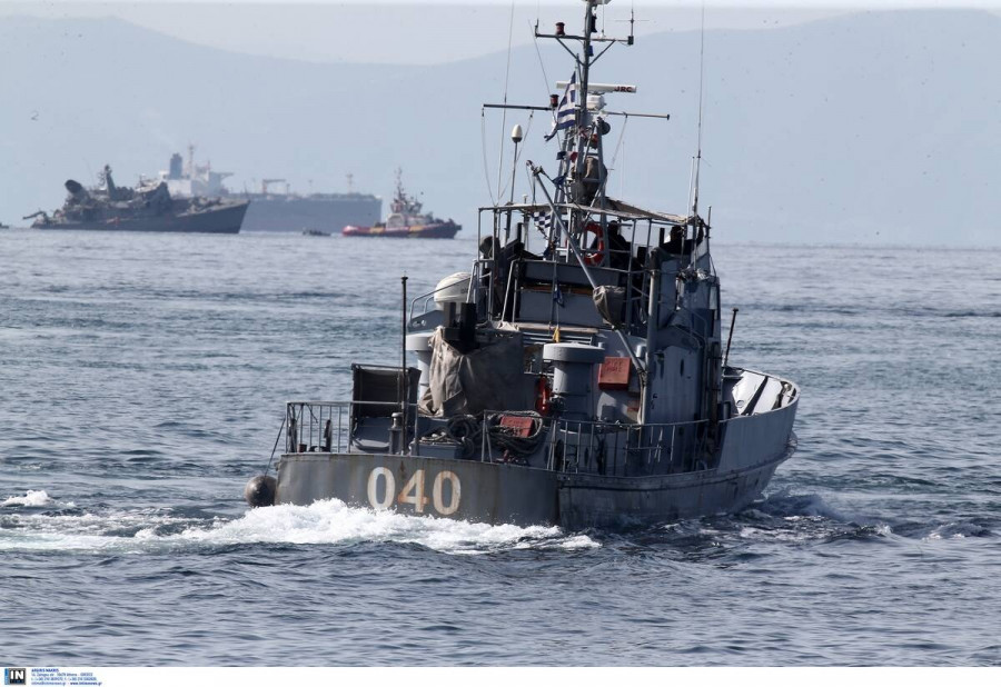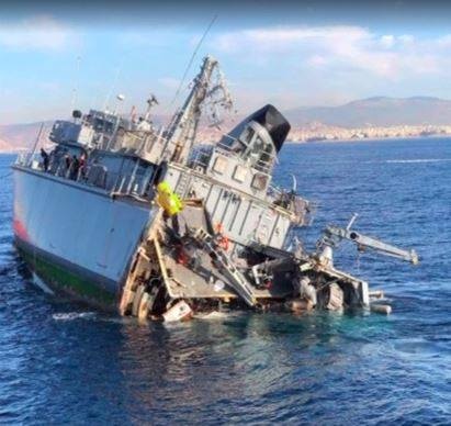 Το πλήρωμα του ναρκαθηρευτικού «Καλλιστώ», στο οποίο σημειώθηκε ελεγχόμενη εισροή υδάτων έπειτα από τη σύγκρουση, περισυνελέγη από παραπλέον πλοίο του Πολεμικού Ναυτικού.