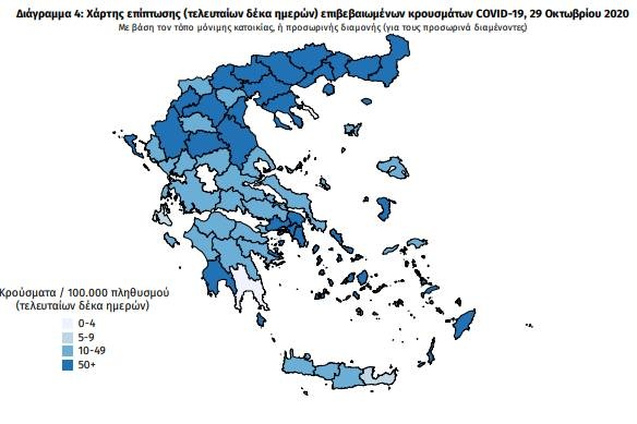 Τα στοιχεία που παρουσιάζονται αφορούν περιστατικά από την επιδημιολογική επιτήρηση της νόσου από το νέο κορονοϊό (COVID19), με βάση τα δεδομένα που έχουν δηλωθεί στον ΕΟΔΥ και καταγραφεί μέχρι τις 29 Οκτωβρίου 2020 (ώρα 15:00).