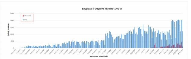 Δείγματα που έχουν ελεγχθεί: Από την 1η Ιανουαρίου 2020 μέχρι σήμερα, στα εργαστήρια που διενεργούν ελέγχους για τον νέο κορονοϊό (SARS-CoV-2) και που δηλώνουν συστηματικά στον ΕΟΔΥ το σύνολο των δειγμάτων που ελέγχουν, έχουν συνολικά ελεγχθεί 1730519 κλινικά δείγματα ενώ από Μονάδες Υγείας και Κλιμάκια του ΕΟΔΥ που διενεργούν ελέγχους Rapid Ag έχουν ελεγχθεί 62678 δείγματα.