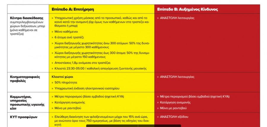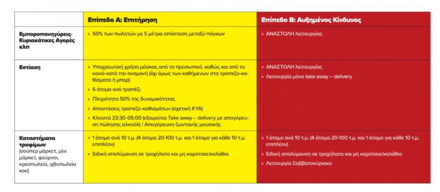 - Ανοικτά λιανεμπόριο, χονδρεμπόριο, σχολεία, ανοιχτοί αρχαιολογικοί χώροι,