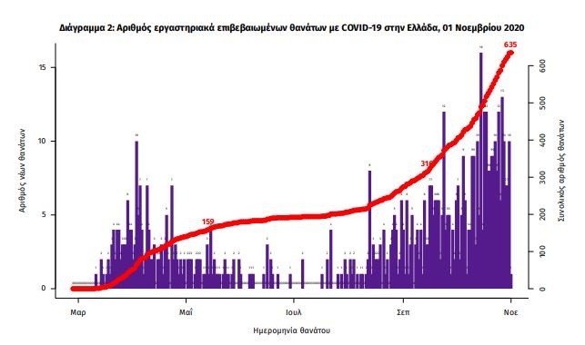 Οι νέοι θάνατοι ασθενών με COVID-19 είναι 9, ενώ από την έναρξη της επιδημίας έχουν καταγραφεί συνολικά 635 θάνατοι. Η διάμεση ηλικία των ασθενών που απεβίωσαν είναι 79 έτη.