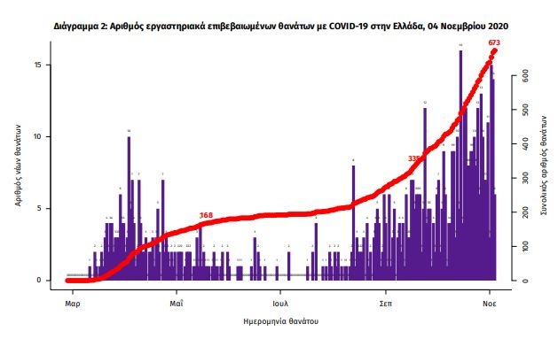 Οι νέοι θάνατοι ασθενών με COVID-19 είναι 18, ενώ από την έναρξη της επιδημίας έχουν καταγραφεί συνολικά 673 θάνατοι. Η διάμεση ηλικία των ασθενών που απεβίωσαν είναι 79 έτη.
