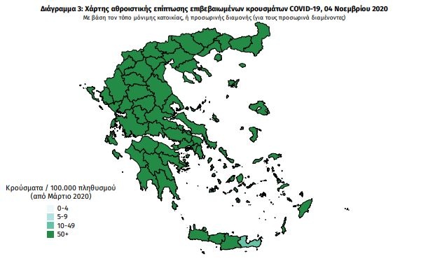Κορονοϊός - Όλες οι Ειδήσεις: Σε 2.646 ανέρχονται τα κρούσματα το τελευταίο 24ωρο στη χώρα μας όπως ανακοίνωσε το απόγευμα της Τετάρτης (04/11) ο ΕΟΔΥ - Η γεωγραφική κατανομή των κρουσμάτων