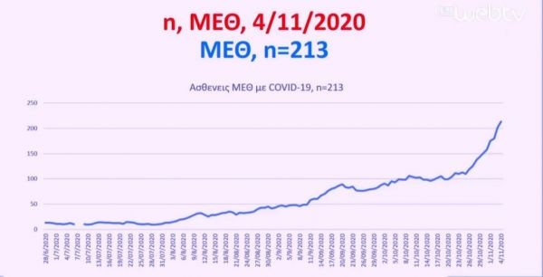 Την ίδια ώρα σύμφωνα με τα στοιχεία που αποκάλυψε ο Σωτήρης Τσιόδρας, στο σύστημα υγείας ασκείται μεγάλη πίεση. Είναι χαρακτηριστικό ότι από τις 26 Οκτωβρίου και μετά, σε όλη την επικράτεια, έχουμε μια σημαντική αύξηση των νοσηλειών σε ΜΕΘ, οι οποίες μέχρι και προχθές το βράδυ ήταν 213. Αυτό συνεπάγεται «μια κάλυψη 60% των ΜΕΘ που έχουν οριστεί για την αντιμετώπιση του κορονοϊού.