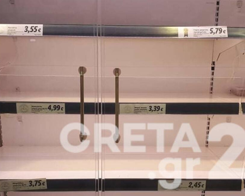 Το Creta24 βρέθηκε σε σούπερ μάρκετ στην πόλη του Ρεθύμνου, και οι εικόνες είναι αποκαλυπτικές. Τα ράφια έχουν κυριολεκτικά αδειάσει από κάθε είδους προϊόντα.