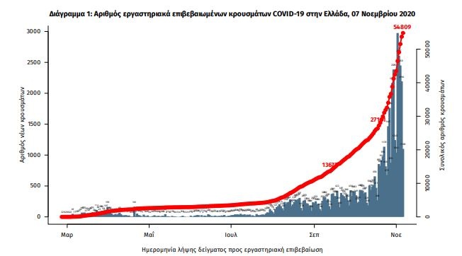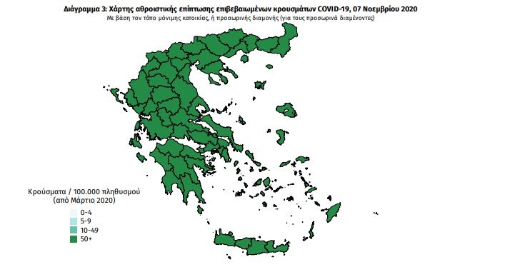 Τα στοιχεία αφορούν περιστατικά από την επιδημιολογική επιτήρηση της νόσου από το νέο κορονοϊό (COVID19), με βάση τα δεδομένα που έχουν δηλωθεί στον ΕΟΔΥ και καταγραφεί μέχρι τις 07 Νοεμβρίου 2020 (ώρα 15:00).