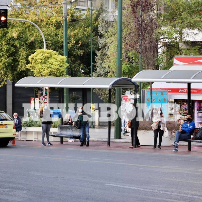 Ακόμη και στις στάσεις των λεωφορείων, ο κόσμος δεν ήταν αρκετός με το μέτρο της τηλεργασίας να βοηθά αρκετά ώστε να αποφευχθεί ο συνωστισμός. Να σημειωθεί, πως όλοι όσοι περίμεναν σε σταθμούς μετρό και σε ΜΜΜ, φορούσαν μάσκες.